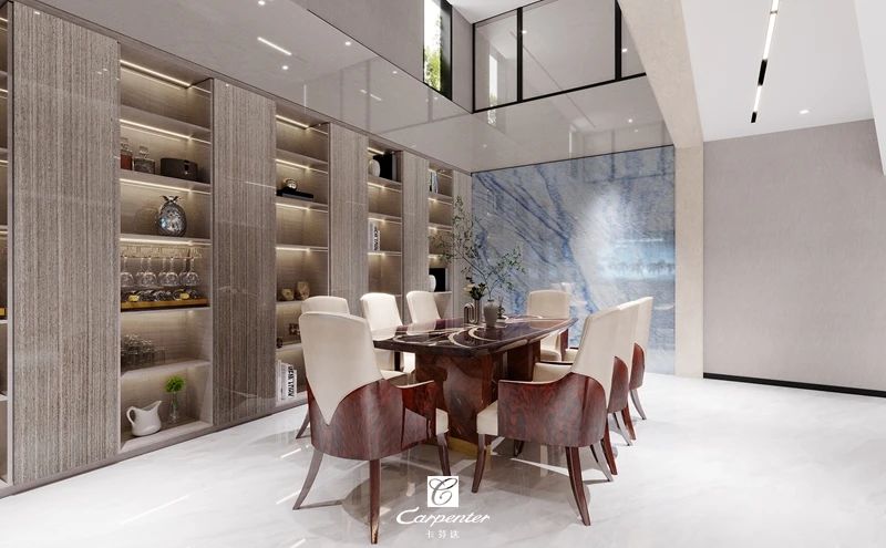 淺灰色飾面與輕奢餐桌椅搭配
