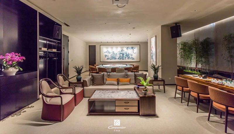 大包間配備休閑區(qū)、就餐區(qū)、品茗區(qū)